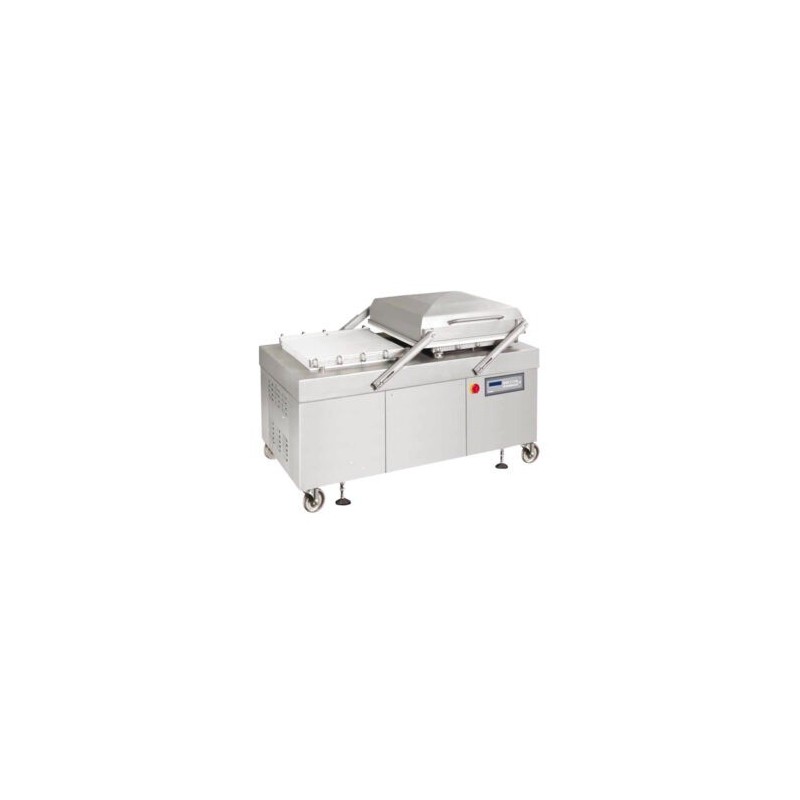 Superficie de trabajo plana barras y de sellado extraíbles para limpieza. La eficiente bomba de vacío de 100 m3 y la construcción de 2 cámaras permiten obtener una alta velocidad de envasado. La cubierta se mueve entre las cámaras por brazos apoyados con un sistema especial de muelles. Equipada con prensa neumática de juntas de sellado. Independientemente de la presión en cámara, el sistema proporciona una fuerza óptima en el proceso de sellado. Equipada con frenos de ruedas y regulador de alineación extraíble que permite nivelar la máquina.