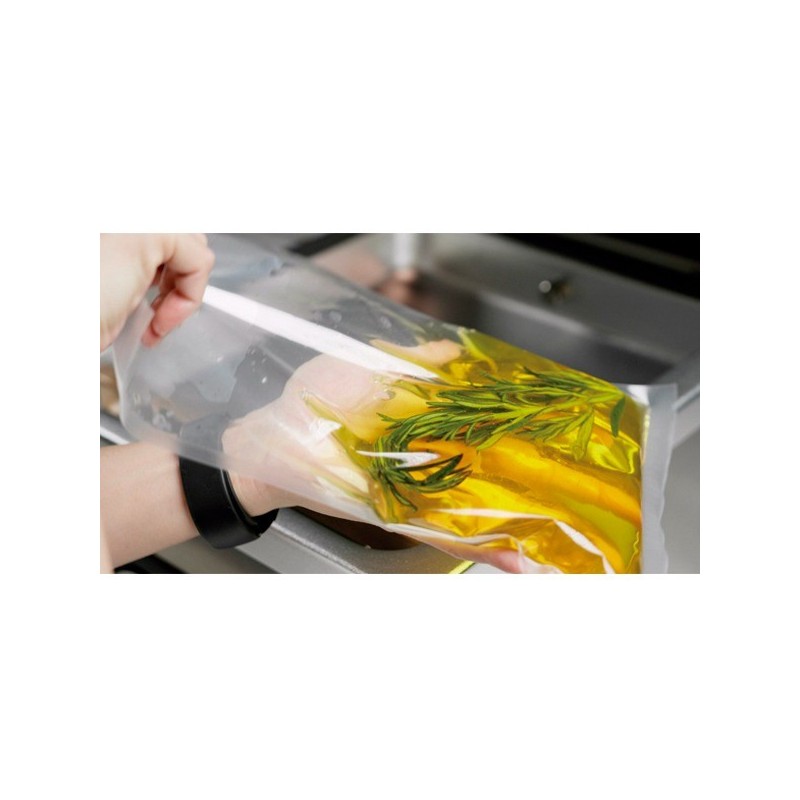Con función de sellado instantáneo, y ciclo ajustable en porcentaje de vacío y tiempo de sellado.
