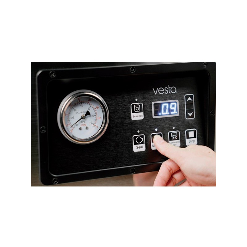 Panel de control sencillo para facilitar el uso y vacuómetro para visualizar el nivel de vacío.