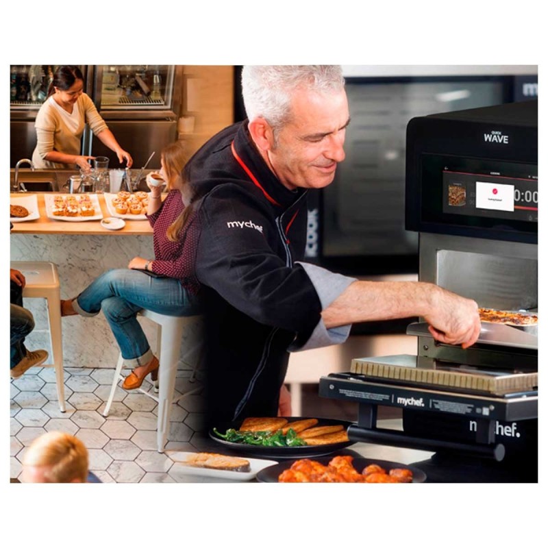 El horno Mychef Quick Wave 2 es un modelo de la serie Quick Wave de cocción acelerada, con capacidad compacta 31x34 cm y alto rendimiento, ideal para optimizar tiempos en cocinas profesionales con alto flujo de trabajo.